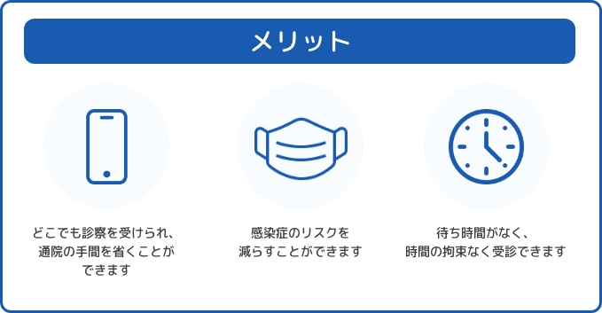 生活習慣病の継続的な診察、男性型脱毛治療、禁煙治療等、来院が難しい方にも安心してご利用いただけます。
